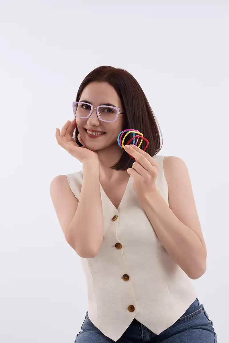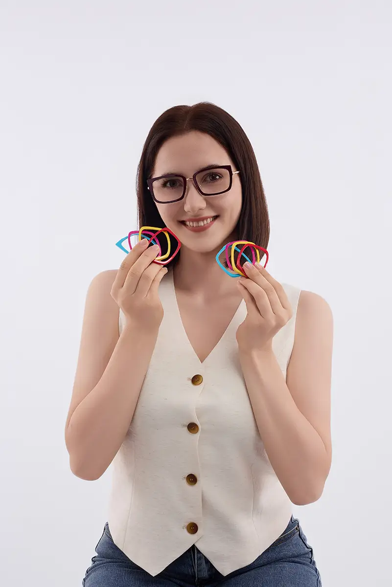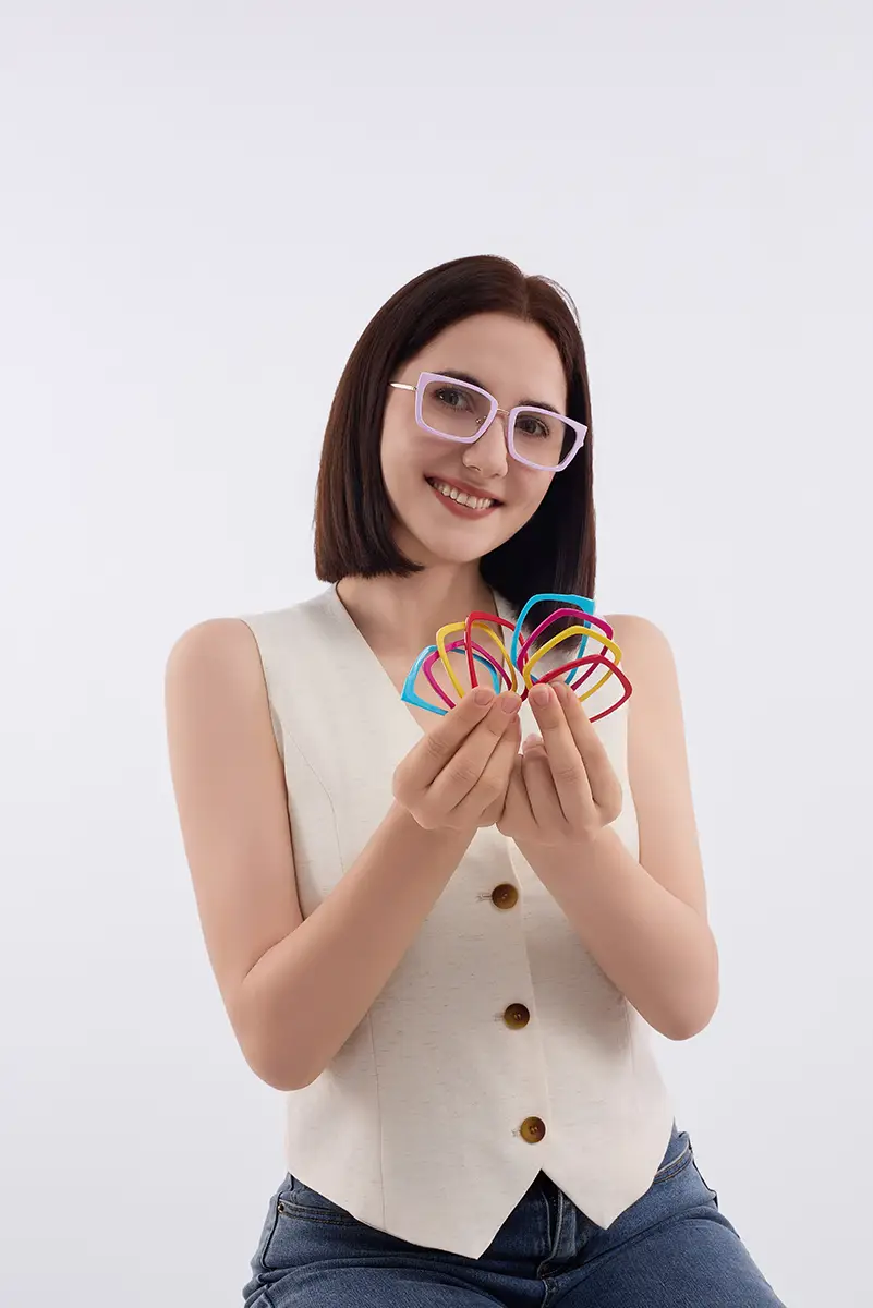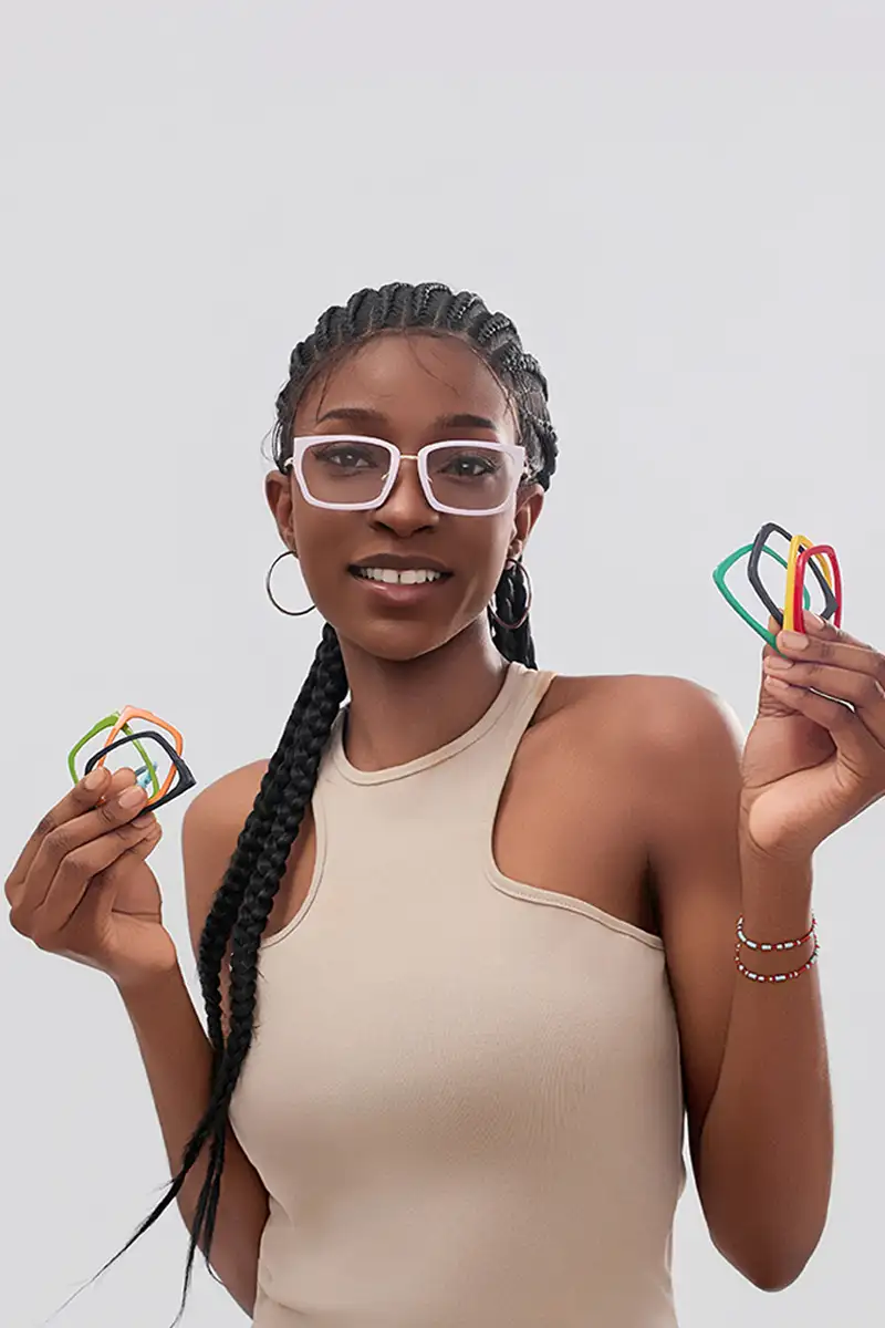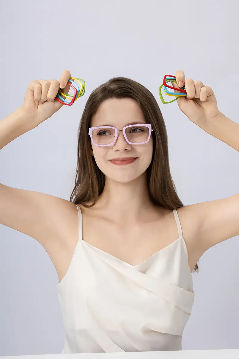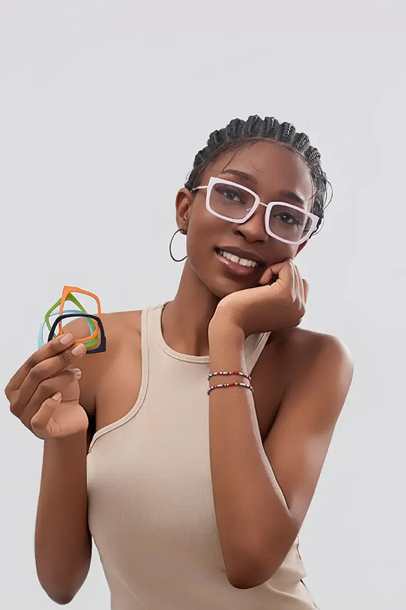 Buy modular prescription glasses online. Lightweight metal base frame with interchangeable top frames let you create 100+ styles in seconds.