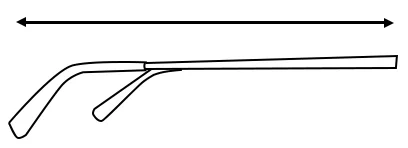 The temple length includes the entire arm of the glasses, from the frame connection point to the tip, including the bend that rests over your ear.