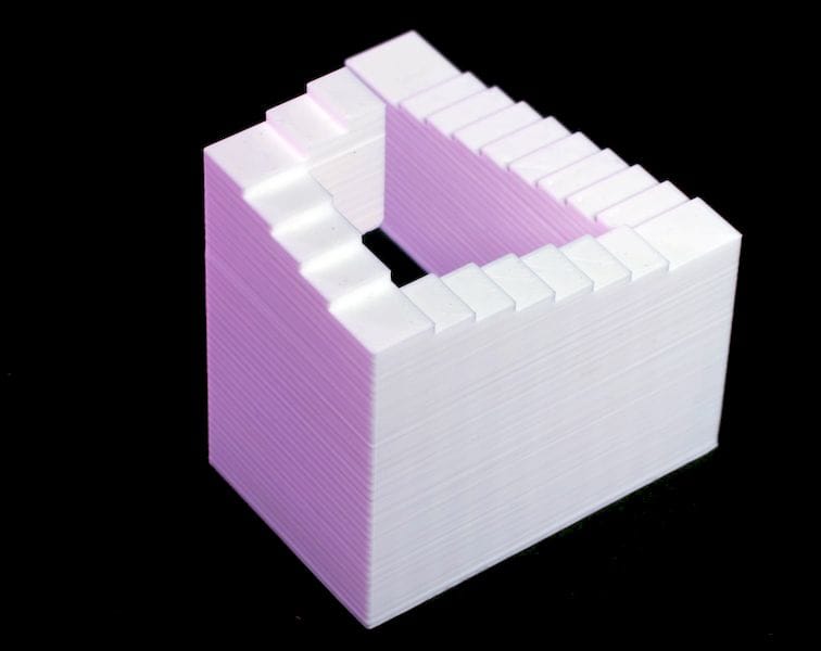 Because layers stack vertically, the printer can create structures unreachable by traditional tools.