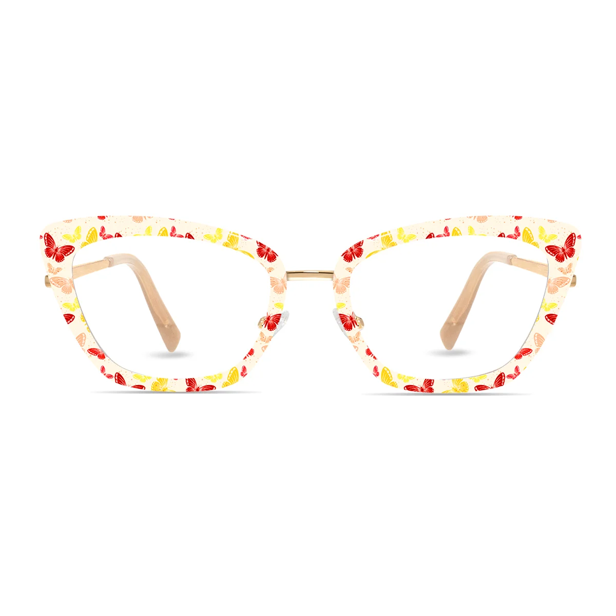 Home / Eyeglasses / Custom Eyewear / Butterfly Top Frame + Classic Gold Base – Mira