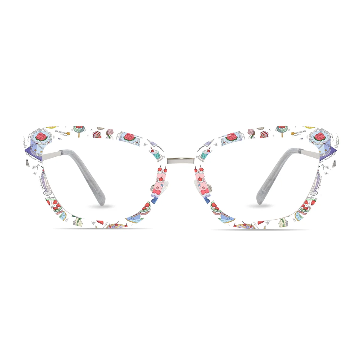 Home / Eyeglasses / Custom Eyewear / Sweet Treats Top Frame + Metallic Silver Base – Mira
