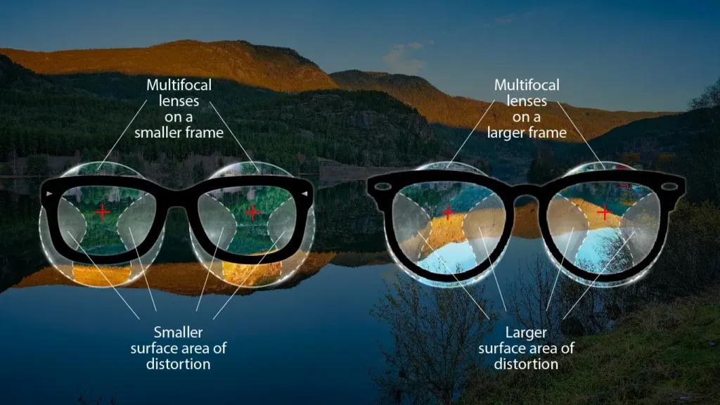 Large frames increase lens thickness.