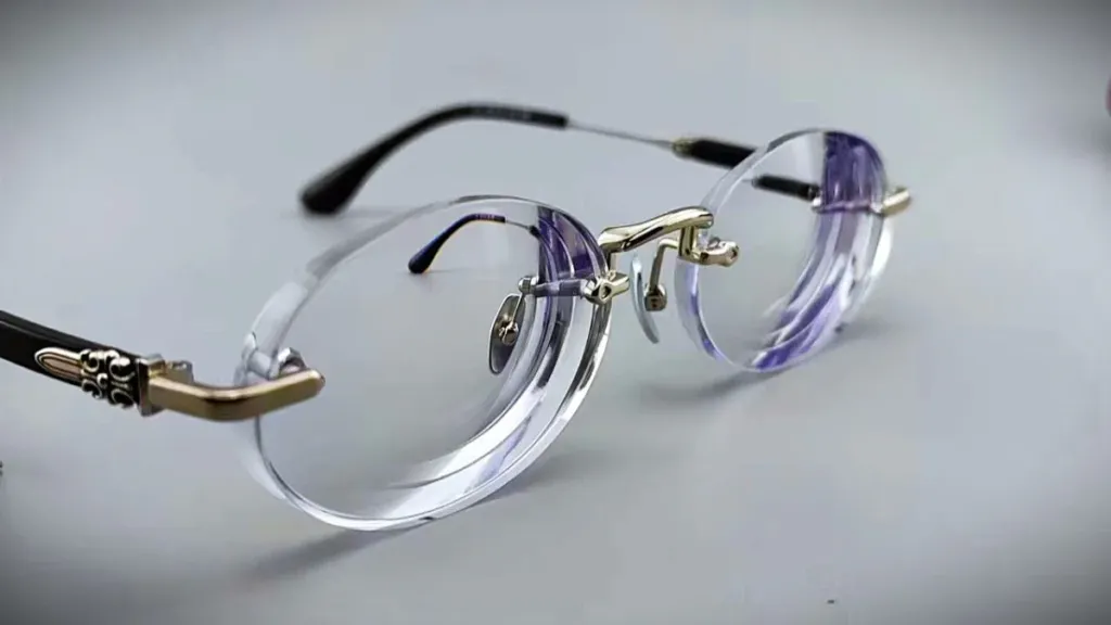 Rimless glasses expose the full lens edge.